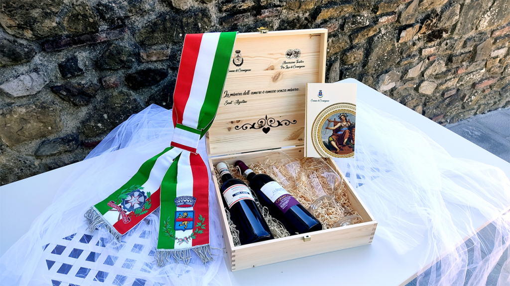 In collaborazione con la Pro Loco, agli sposi che scelgono una delle meravigliose location di questo territorio, il Comune di Carmignano offre due bottiglie del vino d’eccellenza, le cui uve vengono coltivate sui nostri splendidi declivi.