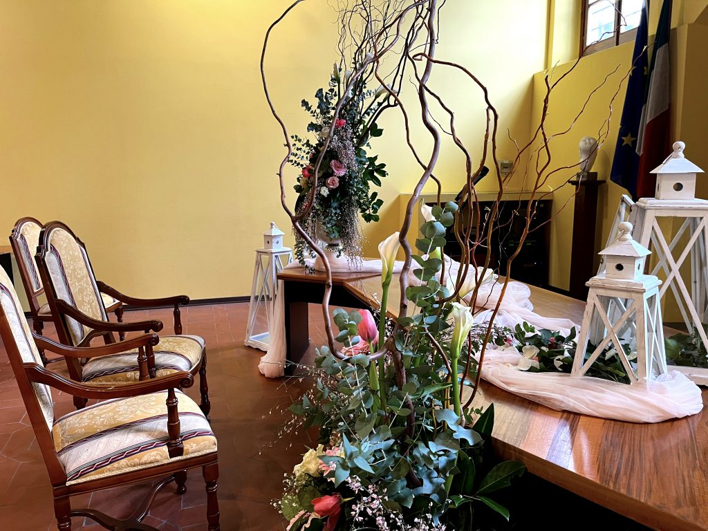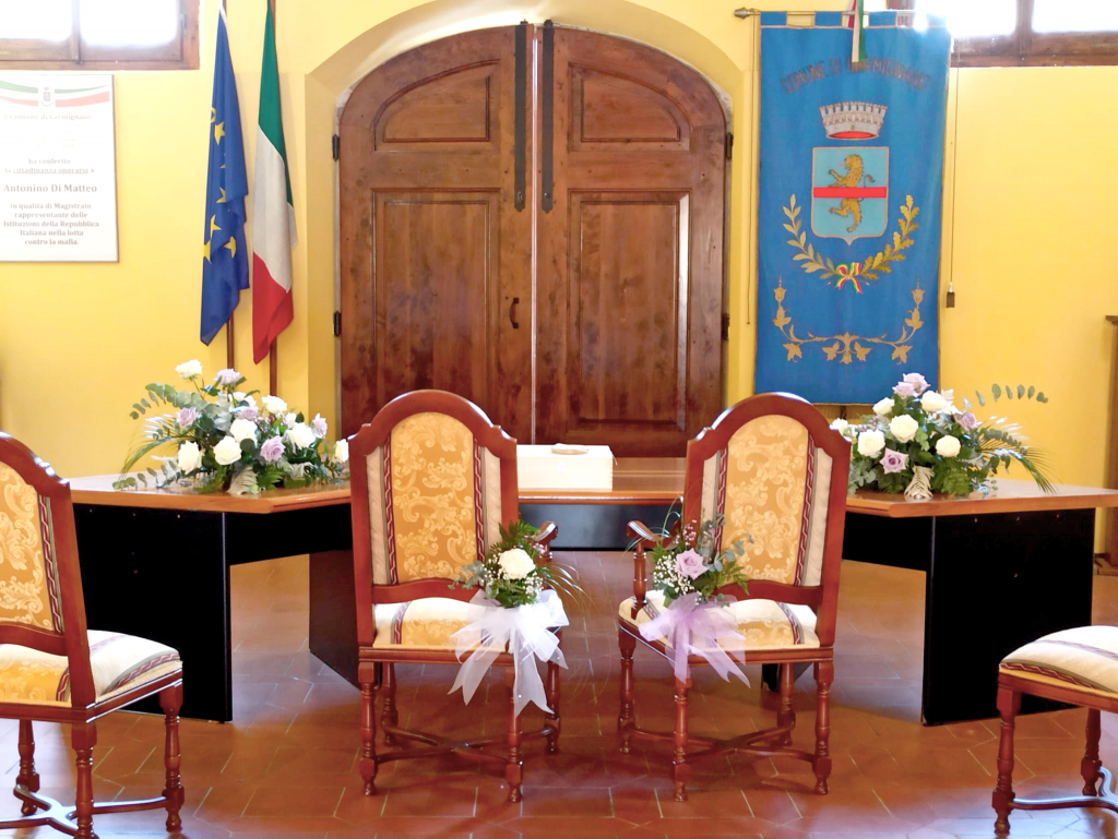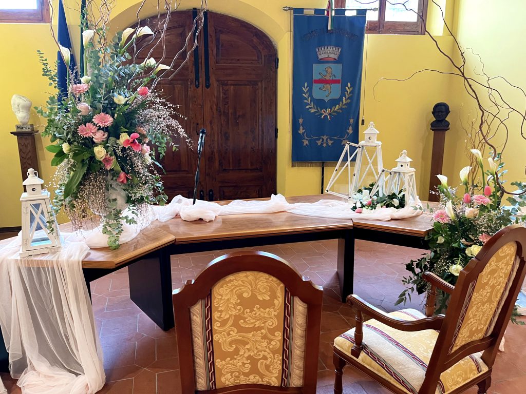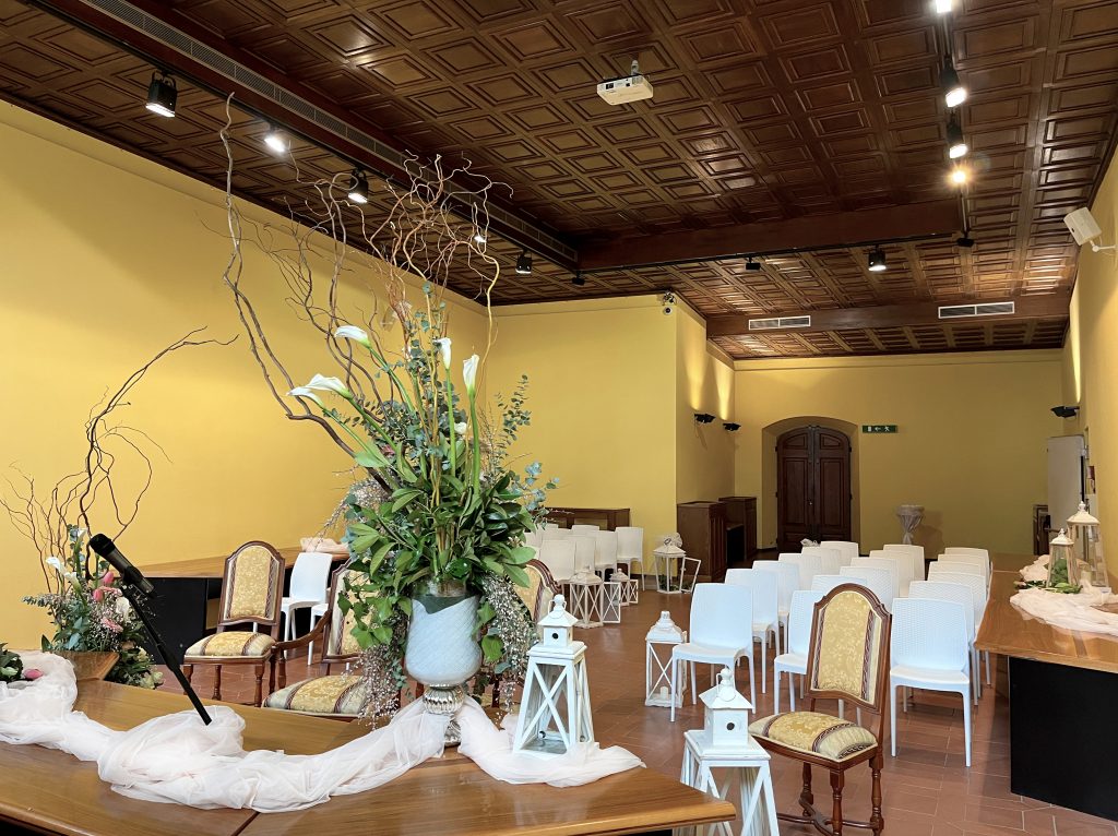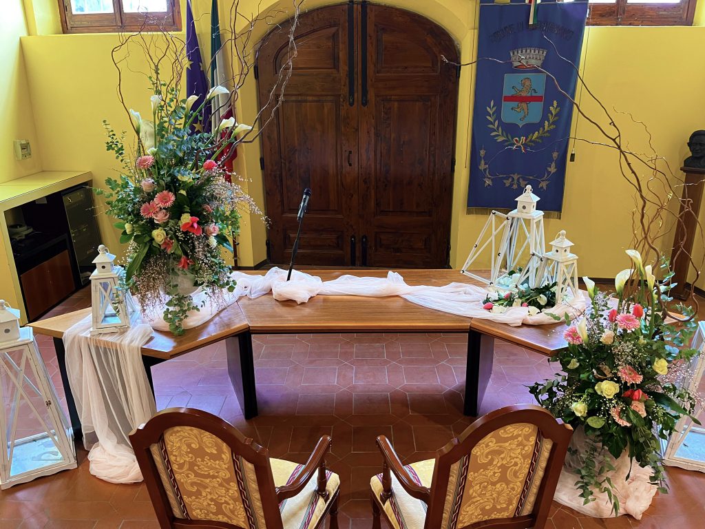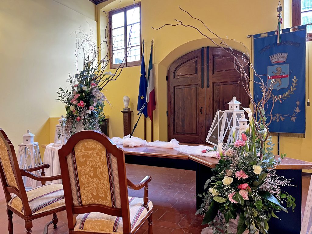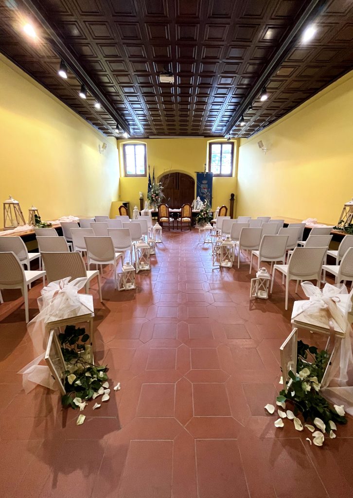 Realizzata in occasione dell’ampliamento del palazzo comunale e a una conseguente massiccia ristrutturazione, la Sala Consiliare nasce nei primi anni Novanta. Avendo il fine istituzionale di ospitare l’organo più alto dell’Amministrazione locale, ha un aspetto austero e sobrio, dunque perfetto per scambiarsi promesse eterne.