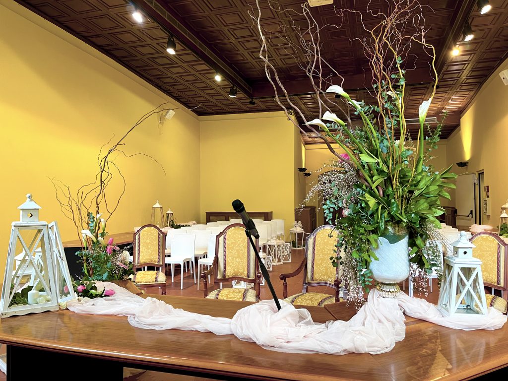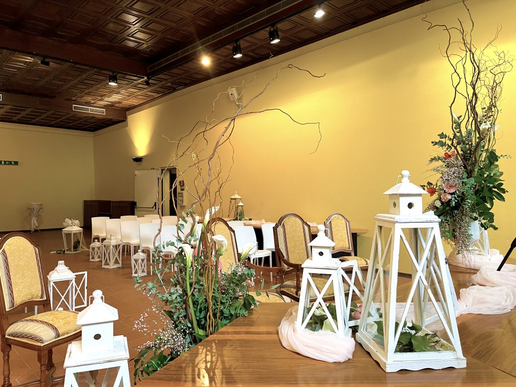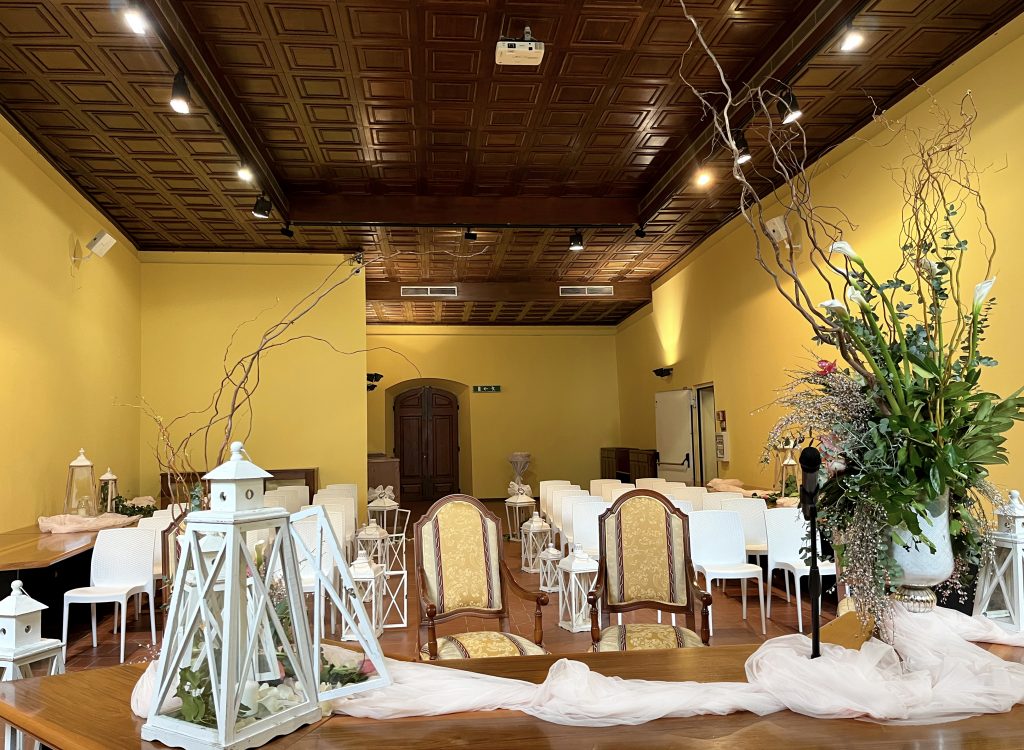 Spazioso e luminoso, dunque, è un salone molto adatto a ospitare una cerimonia elegante e ricca di ospiti. Dotato di impianto audio in filodiffusione, ha infine anche il vantaggio di poter prevedere anche una traccia sonora per rendere questo importante momento emotivamente più coinvolgente.