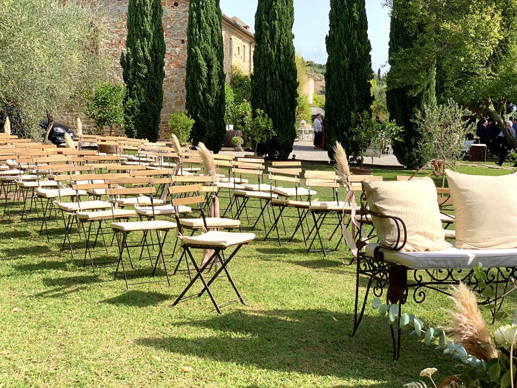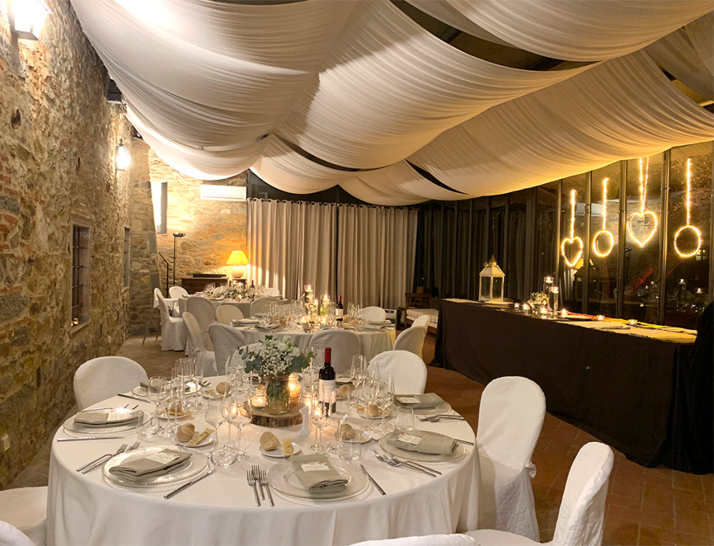 È l’ideale per un ricevimento di nozze dal sapore intimo, ma con lo charme tipico della campagna toscana.